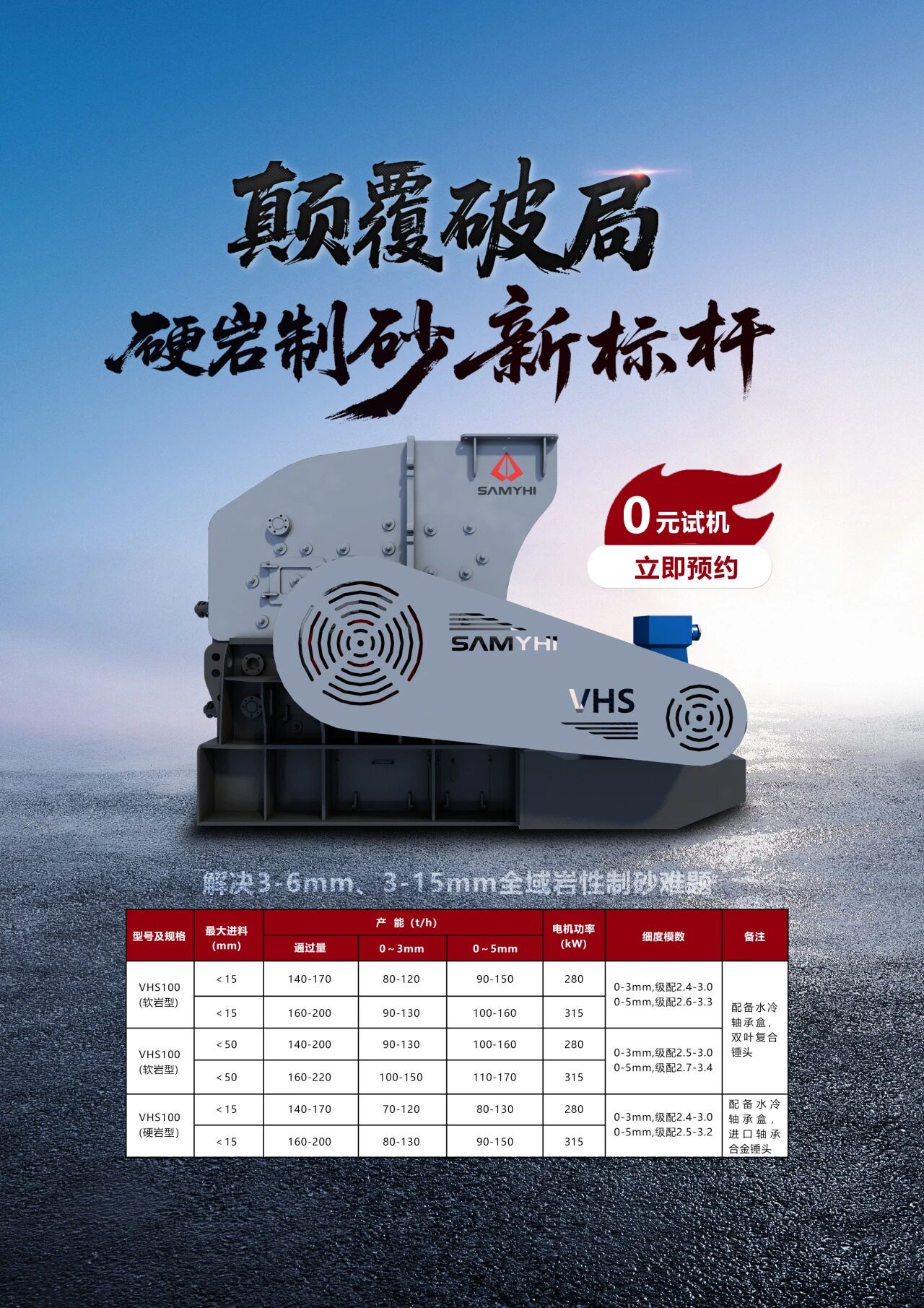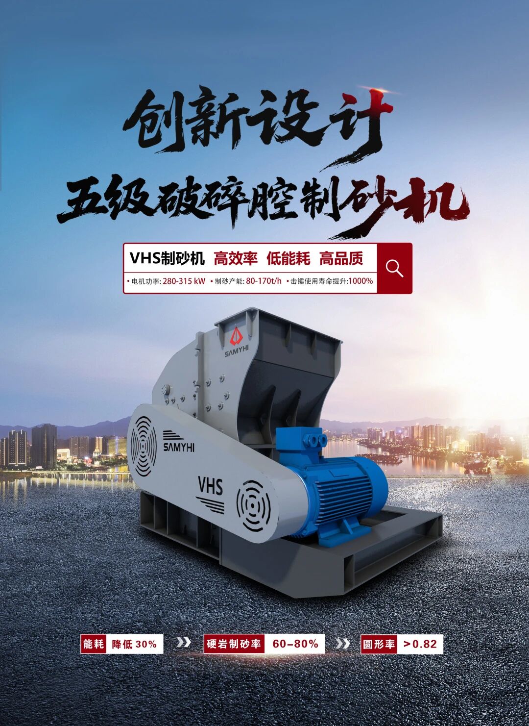 VHS制砂機新突破:不僅適用于石灰石等軟巖制砂,也能應對花崗巖、玄武巖、輝綠巖、鵝卵石等硬巖制砂挑戰(zhàn)。與VCX超細制砂機相比,VHS制砂機電機能耗再降30%、產(chǎn)能提升20%、擊錘使用壽命延長1000%。成品制砂率達到60-85%,且級配連續(xù)不斷檔。